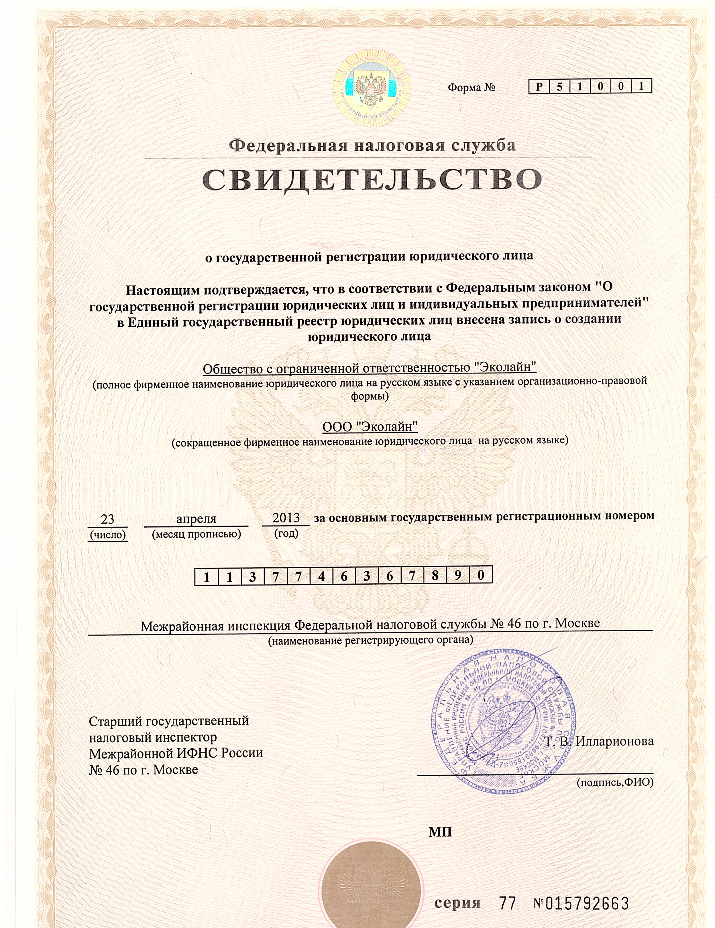 Свидетельство о государственной регистрации юридического лица